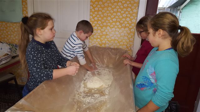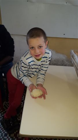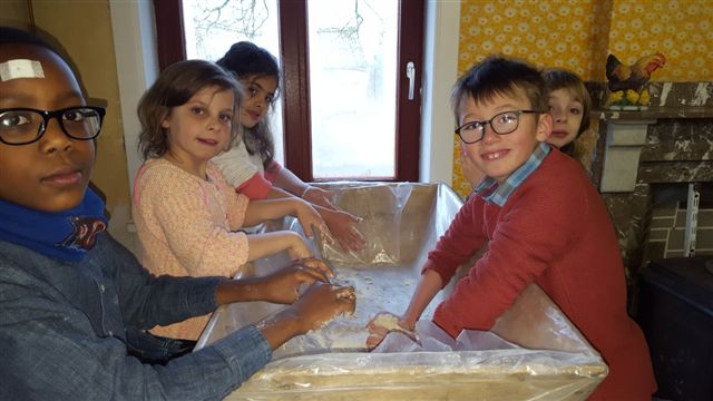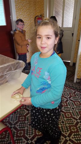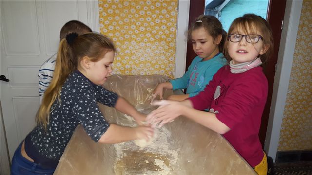 Lors de notre visite au musée, nous avons fabriqué du pain comme autrefois.