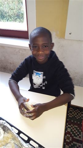 De retour à l'école, nous dégustons notre pain !