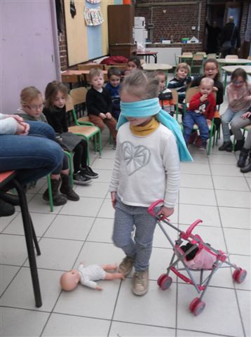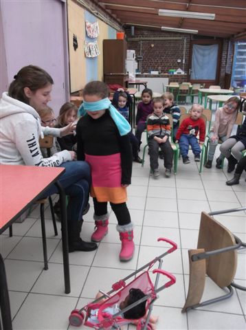 Nos élèves de maternelle, ce sont donc mis dans la peau de Mimi (personnage d'histoires pour enfants) et ont découvert comment sentir, ressentir, se diriger, toucher et écouter.